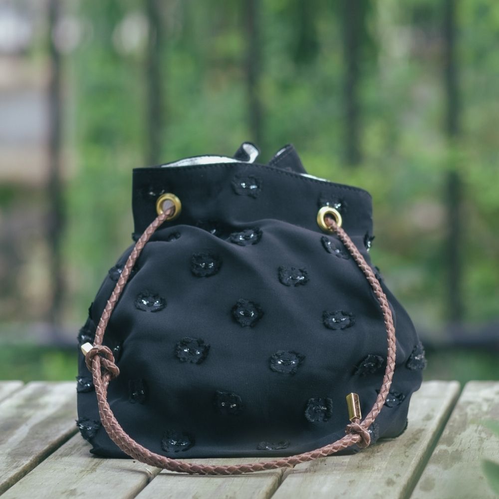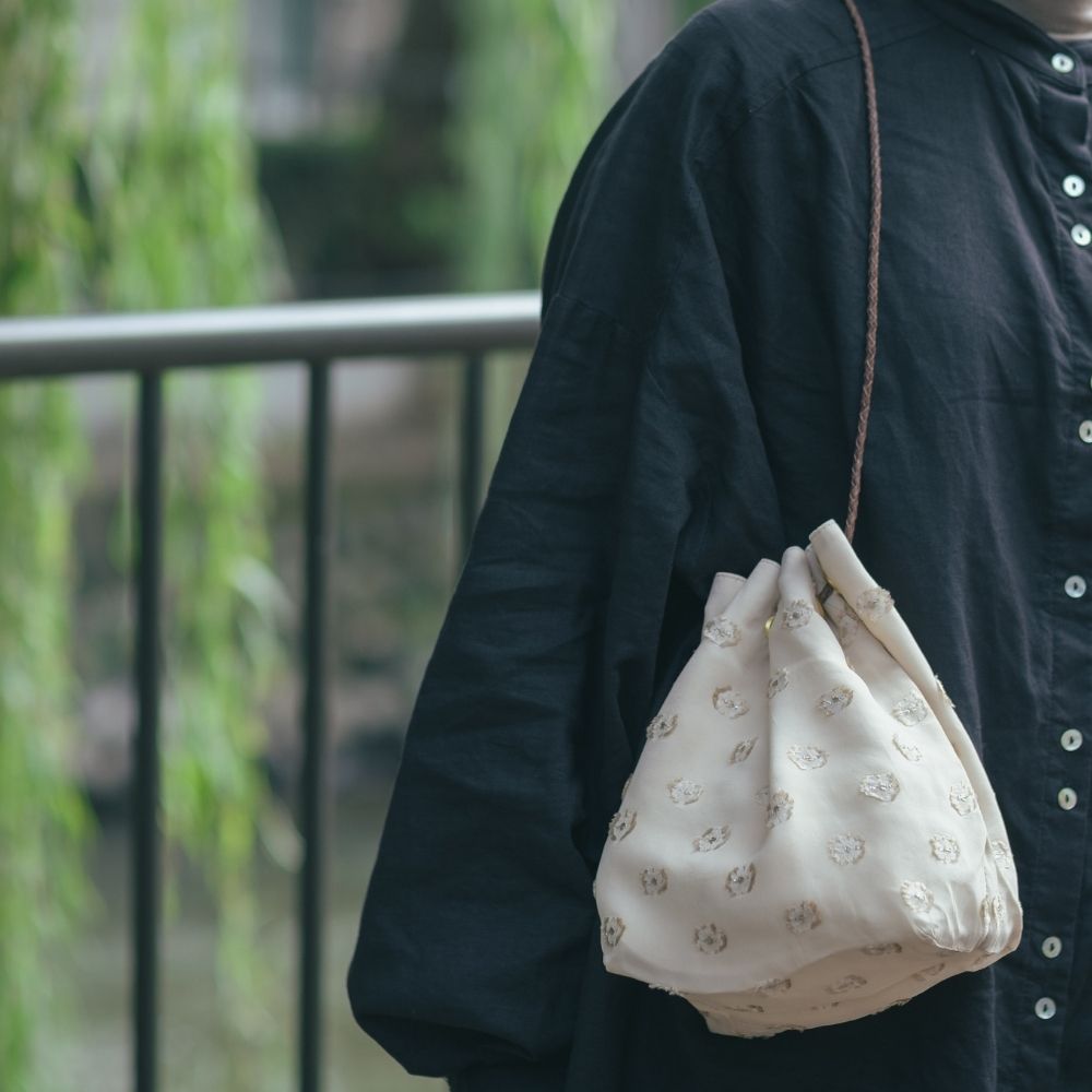 コロンとしたフォルムが愛らしい巾着スタイル。