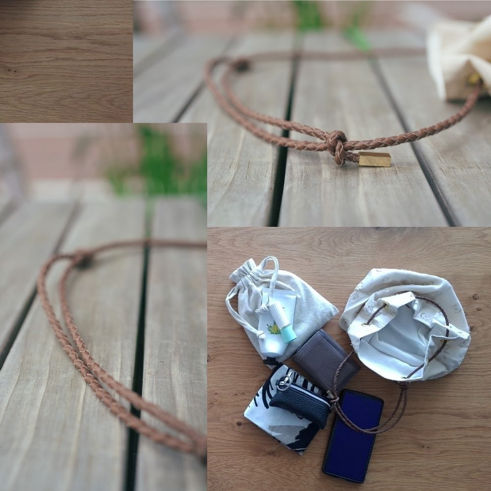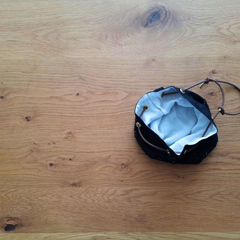 巾着バッグは、開け口を絞れるので中身が落ちにくく、開けた時も口が広く使いやすいのもうれしい特徴です。