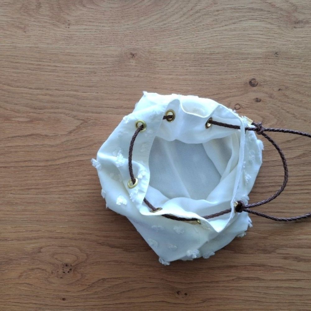 巾着バッグは、開け口を絞れるので中身が落ちにくく、開けた時も口が広く使いやすいのもうれしい特徴です。