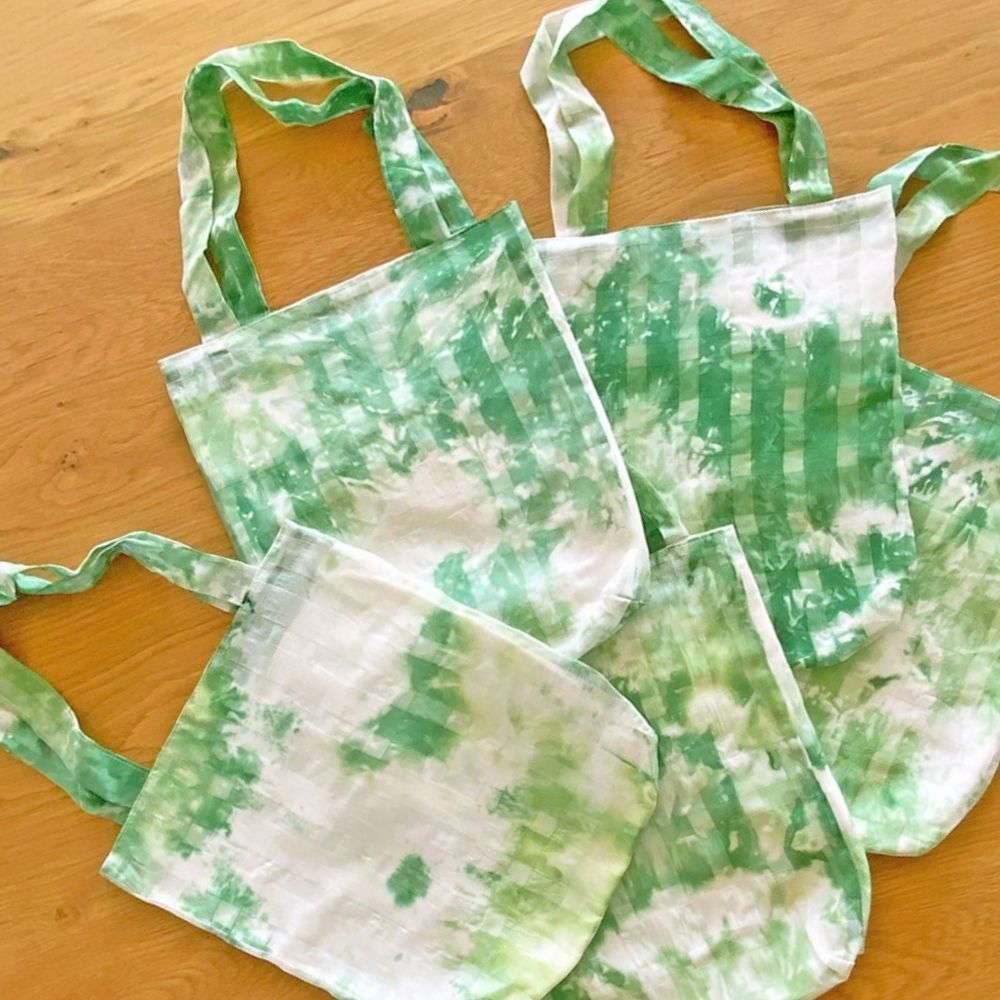 生地の段階で“カゴ染め”という手染めで染色をしています。伝統的な手法で、専用のかごを使用し職人の手作業で染めるため、同じ模様が存在しません。一点一点異なる魅力をお楽しみください。