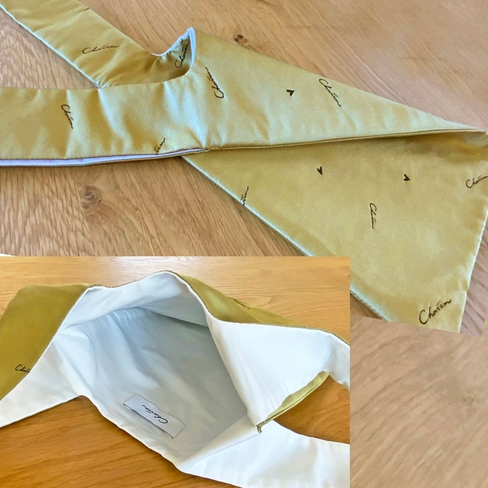 Charrrmのロゴをサテンジャカード織りで表現。