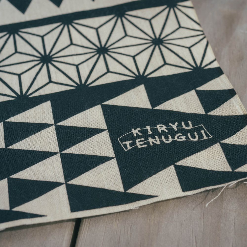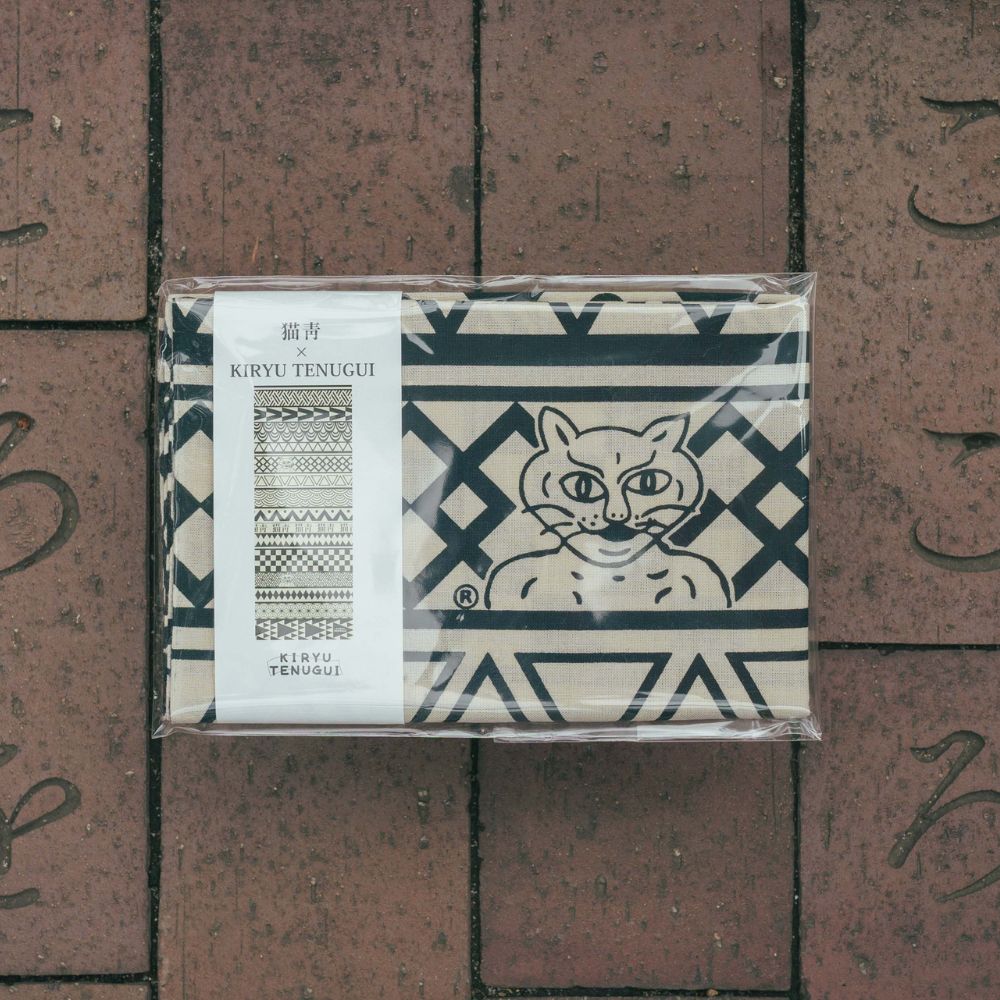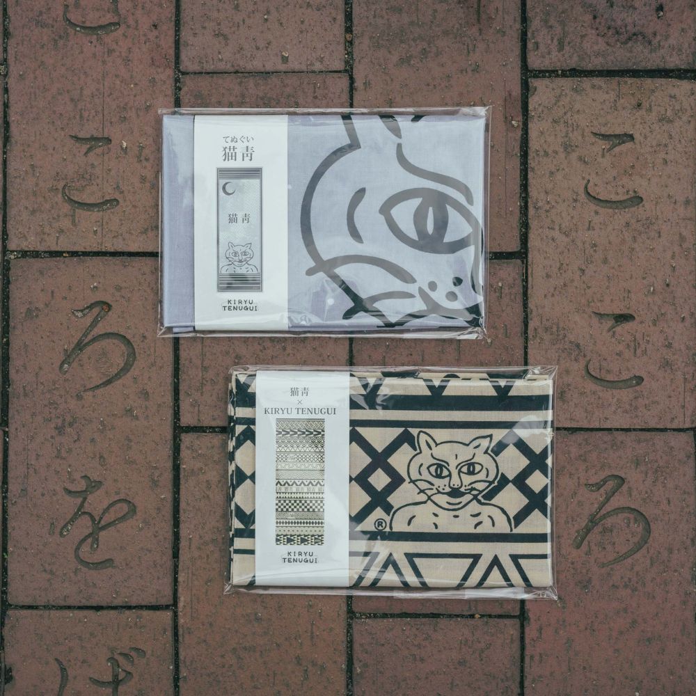 桐生てぬぐいの元祖デザイン「KIRYU」と「靑猫」のコラボてぬぐい。