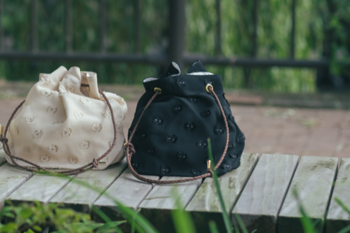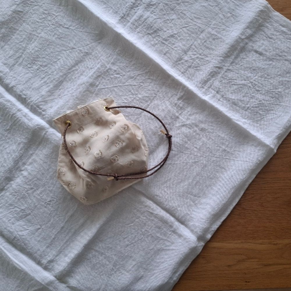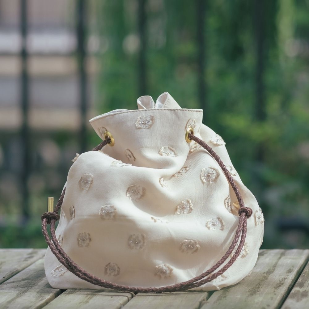 コロンとしたフォルムが愛らしい巾着スタイル。