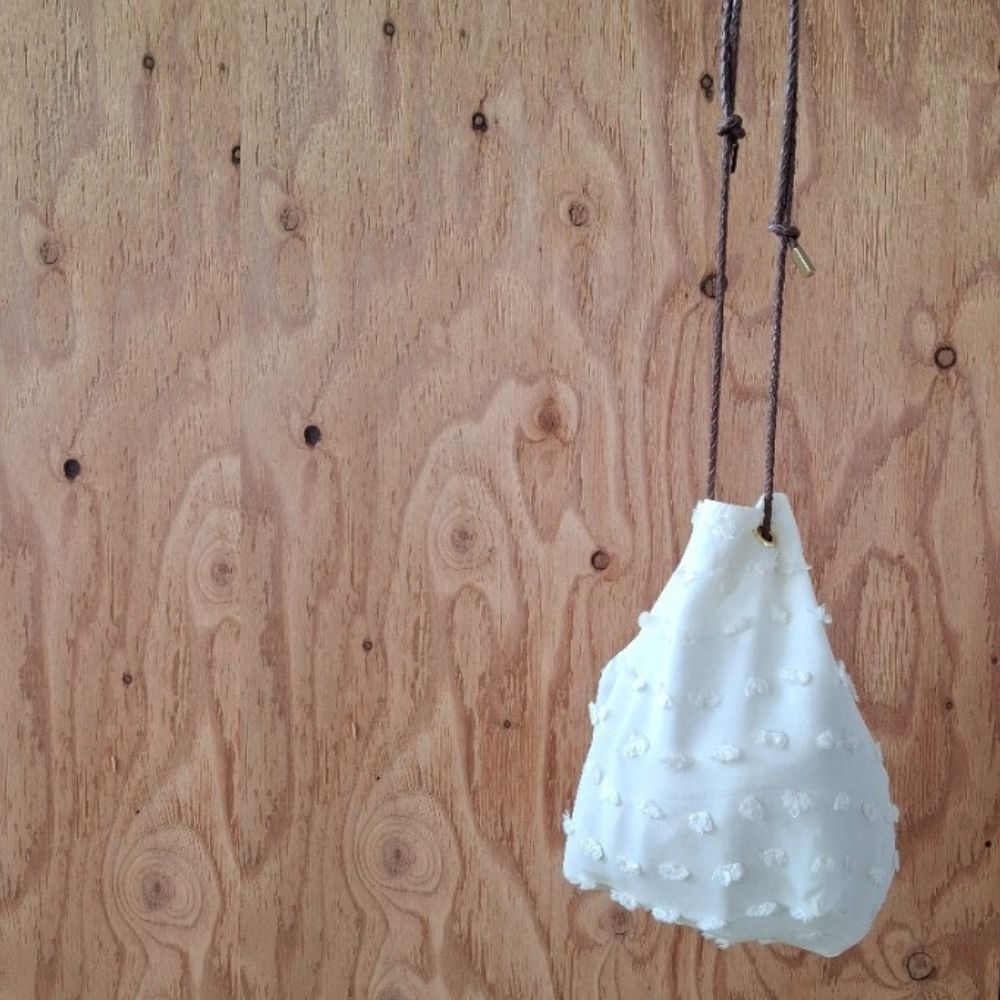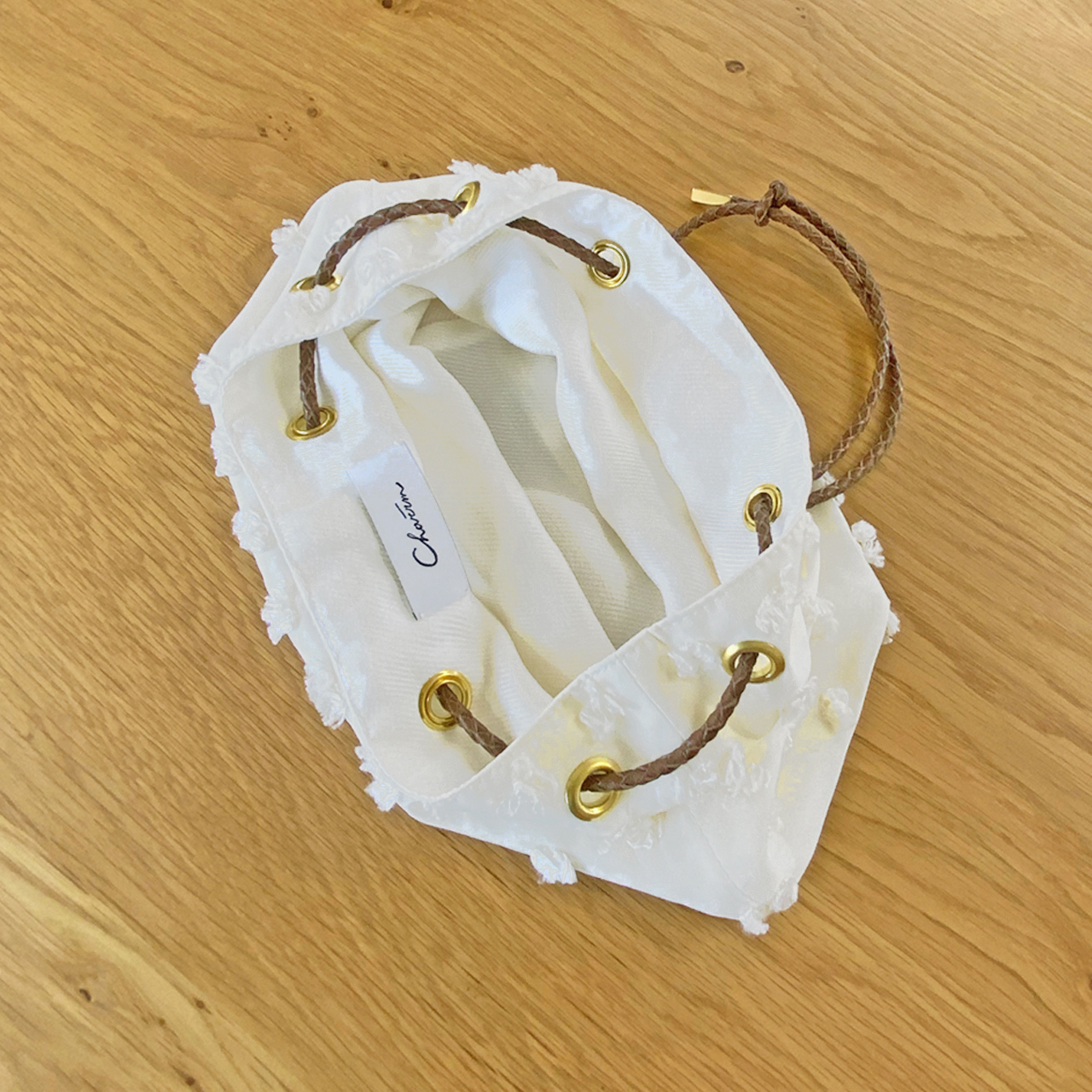 さりげなく揺れるフリンジ、とろんと柔らかな素材感、コロンとしたフォルムが愛らしい巾着スタイル。