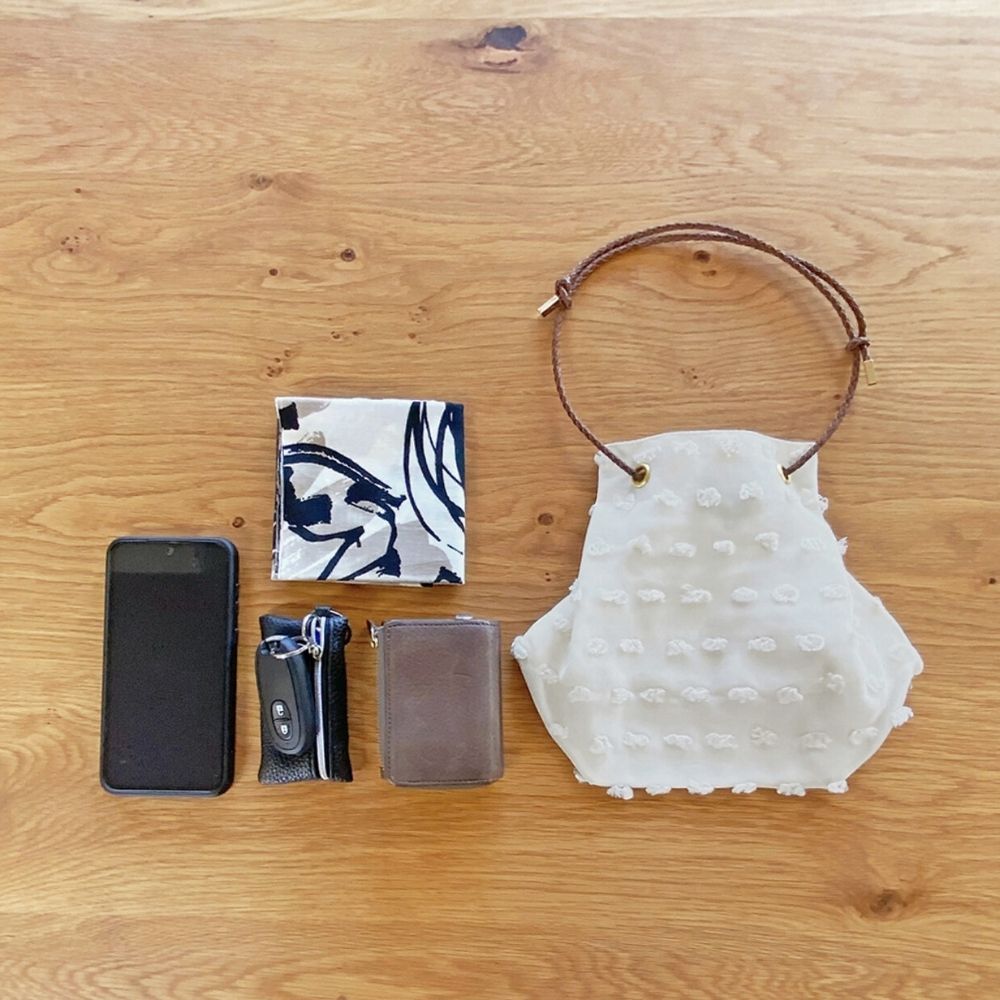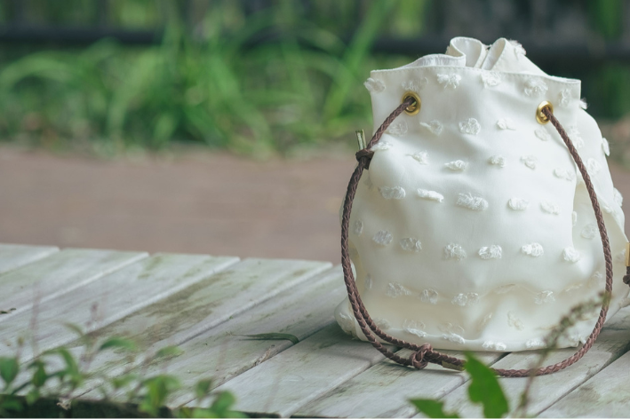 巾着バッグは、開け口を絞れるので中身が落ちにくく、開けた時も口が広く使いやすいのもうれしい特徴です。