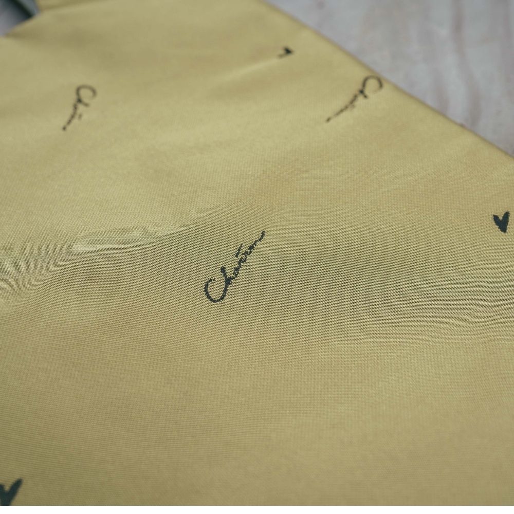 落ち着いた色合いとデザイナー手描きのさりげないハートが女子心をくすぐります。このような細かな図柄の表現もジャカード織物では可能です。