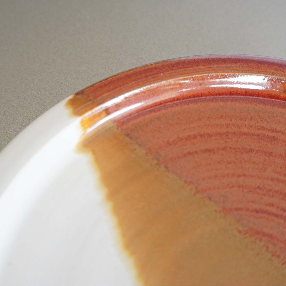 間の色は、2種類の釉薬が重なり、焼成時に変化してできたものです。