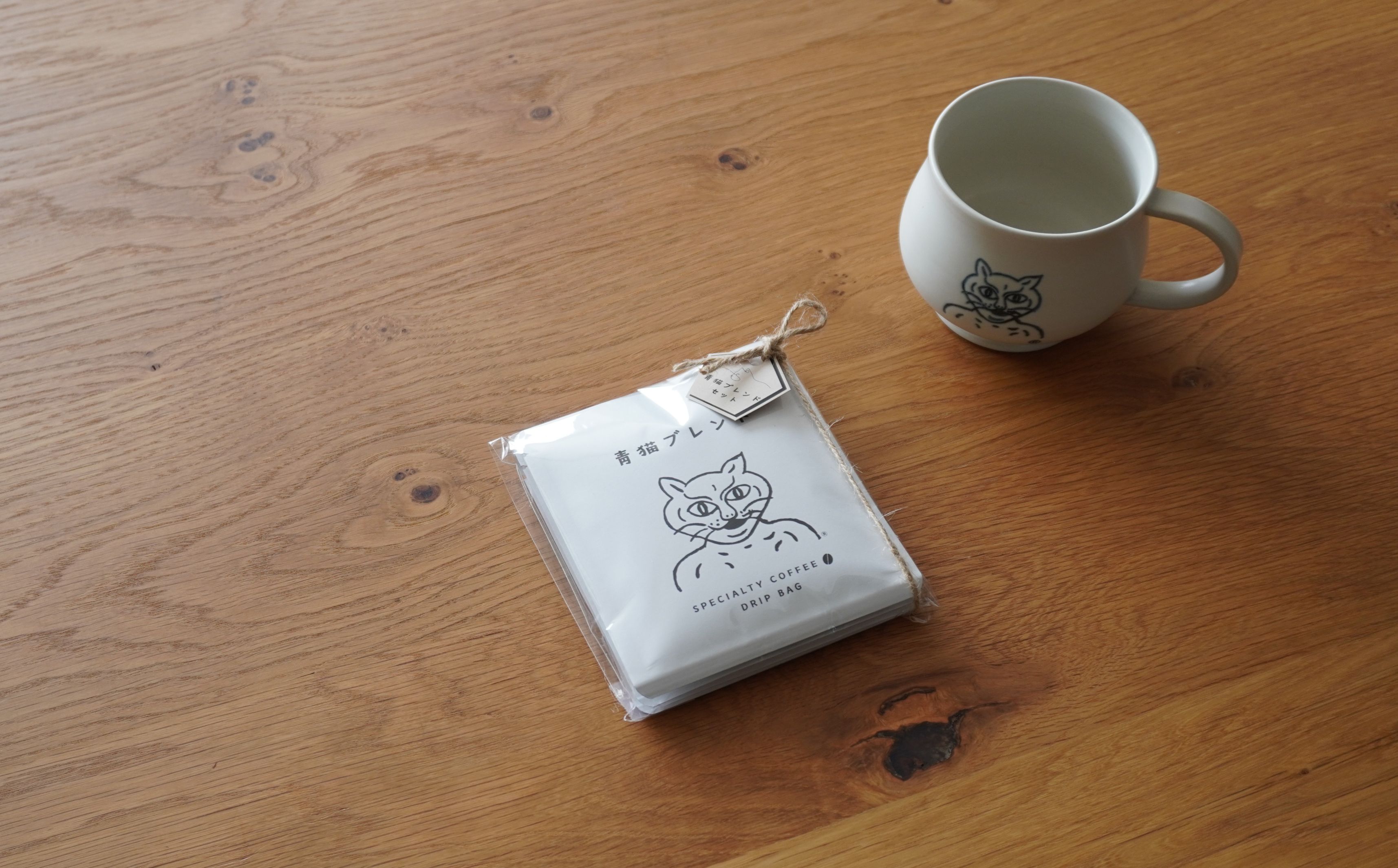 「青猫」のもつ存在感をいかすデザインを、陶芸作家の小林さんの手により、一つ一つ丁寧に製作されたマグカップです。